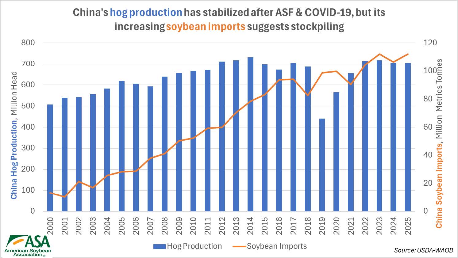 China has not been shy about its strategies to circumvent freshly harvested U.S. supplies this fall. China imported record volumes of Brazilian soybeans between April and July 2025, growing domestic stockpiles of soymeal to the point at which Chinese soybean processors are facing negative margins. In early August 2025, traders announced a first-time export sale of Argentine soymeal to China to be delivered this fall to reassure Chinese feed mill buyers anxious about hog feed availability amid the ongoing trade dispute.