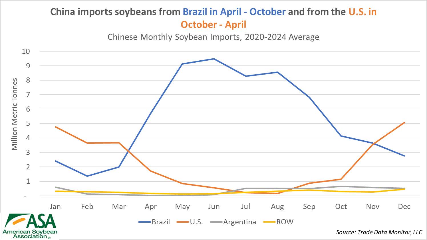 In addition to increasing competing volumes, Brazil’s presence in the global soybean market narrows the selling window for U.S. soybean exports. The prime U.S. soybean export sale window to China typically spans from fall harvest in September and October through February and in some years, early March, if Brazil experiences harvest delays.